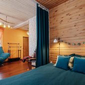 На территории обустроена детская игровая площадка. После катания на лыжах или велосипеде гости могут отдохнуть в саду или в общем лаундже.