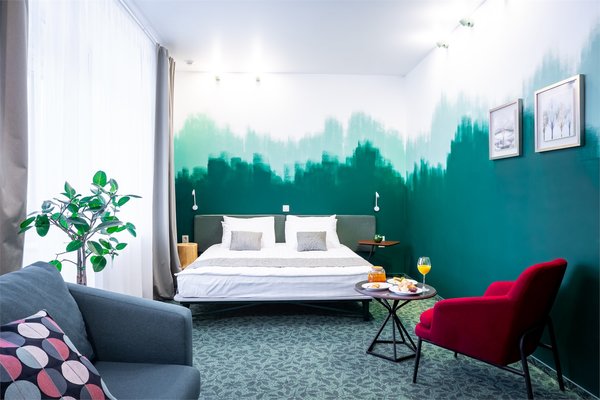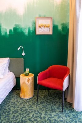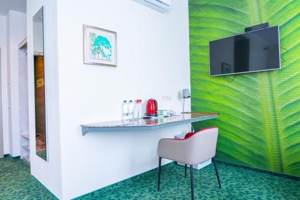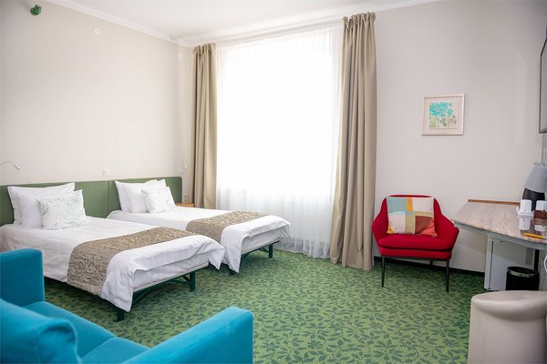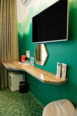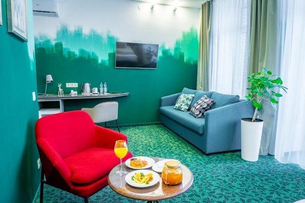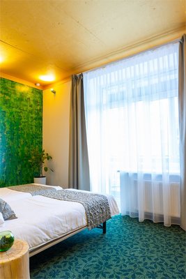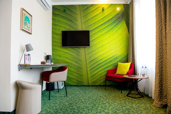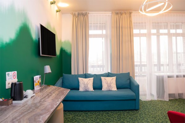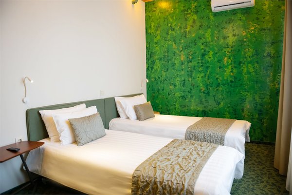 Гостям предлагаются уютные номера различной вместимости с оригинальным дизайном и всеми необходимыми удобствами, включая собственный санузел, душ, кондиционер, электрочайник и фен.