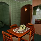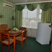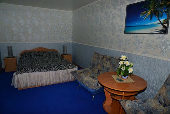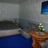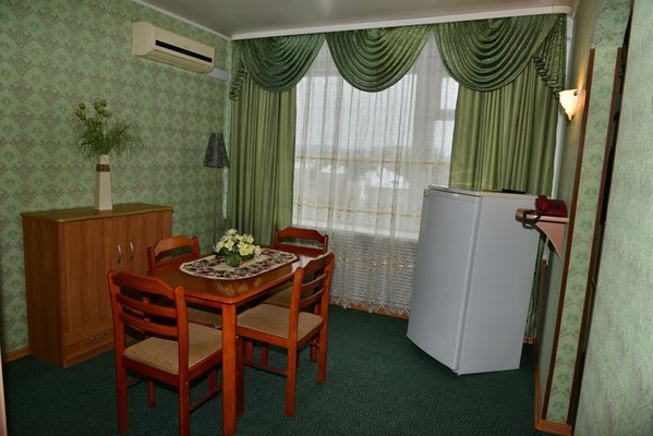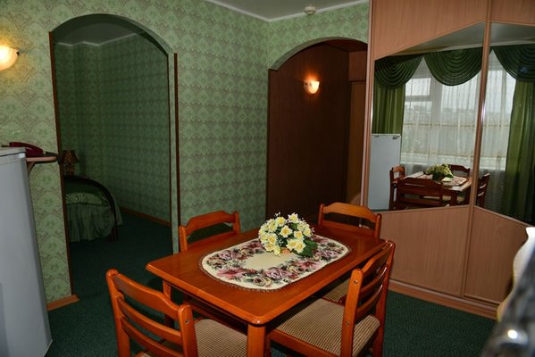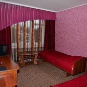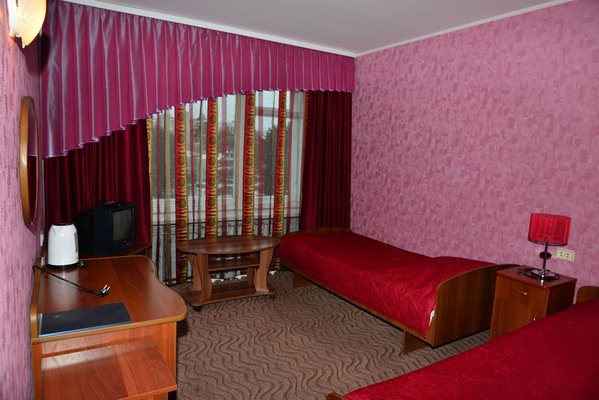 Номерной фонд отеля позволяют разместиться в одноместных и двухместных номерах. Их интерьер оформлен в классическом стиле. В собственных ванных комнатах установлены душевые кабины. Среди удобств: кондиционер и холодильник. В комплексе расположена гостиница.