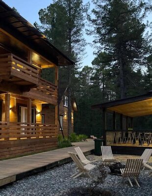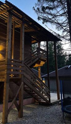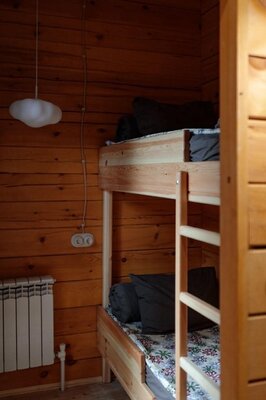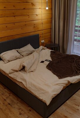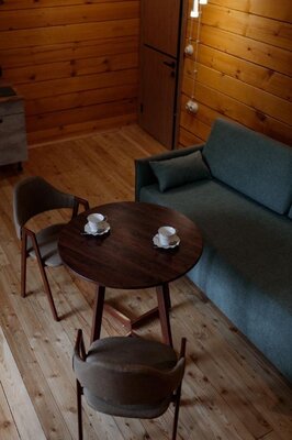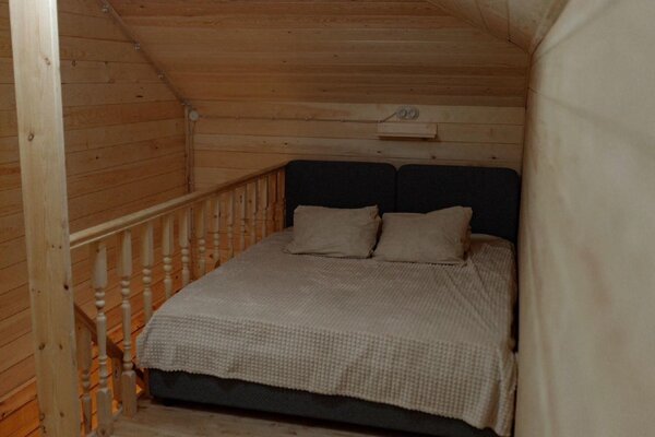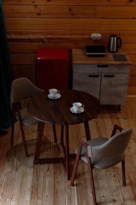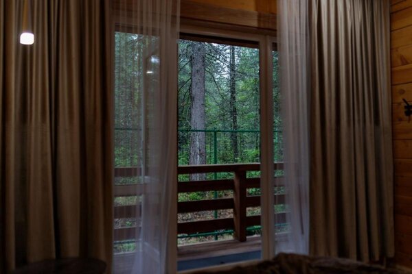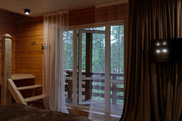 Насладитесь отдыхом в уютных деревянных номерах (10 уникальных, просторных, с лесным видом), оборудованных всем необходимым: телевизор, холодильник, санузел с душем и индивидуальными принадлежностями.