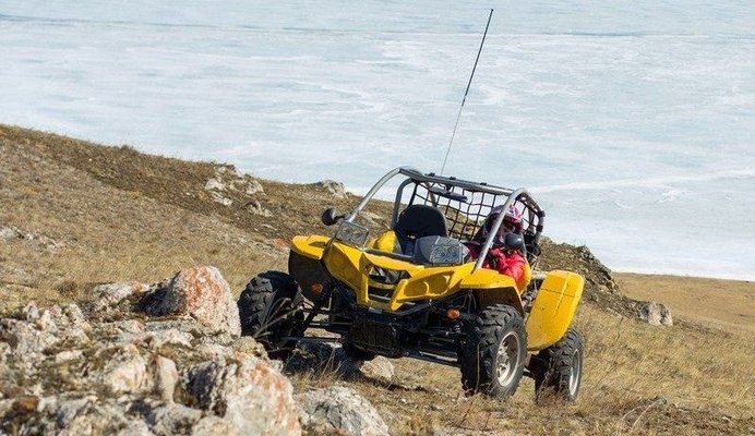 Багги. Кроссовый двухместный автомобиль открытого типа. Посадка как в автомобиле. Участникам туров выдаются шлема, очки, ветрозащитные костюмы. Стоимость — 6000 ₽/час.