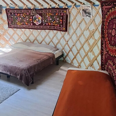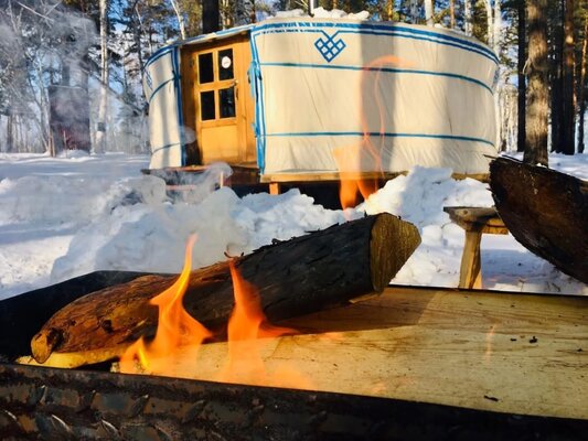Расслабьтесь в русской бане, освежитесь в бассейне или насладитесь парением в чанe под открытым небом. Готовьте шашлыки на мангале прямо у своей юрты.