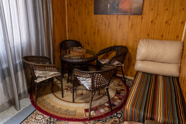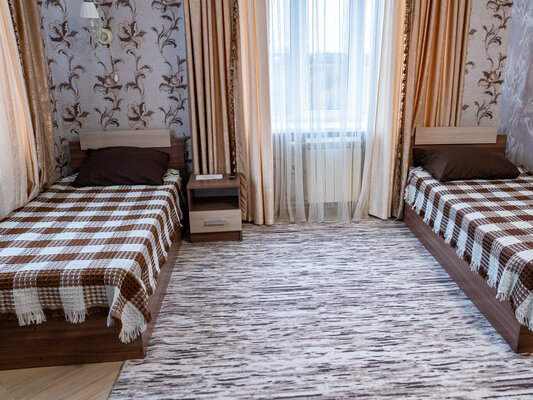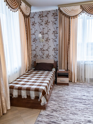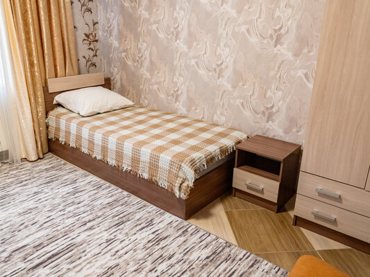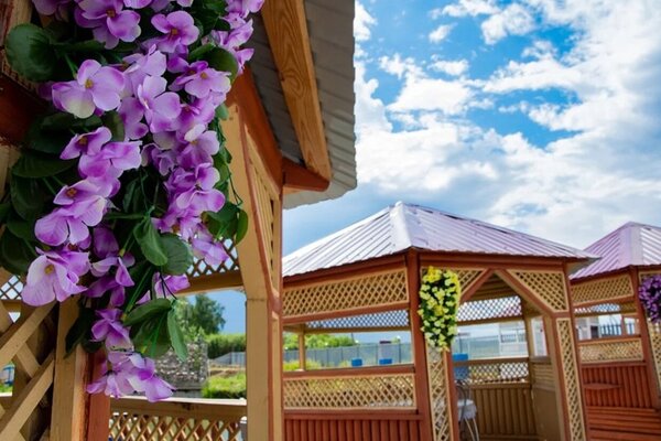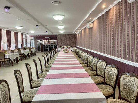 Двухэтажное здание предлагает пять комфортабельных номеров, банкетный зал и отдельный VIP-зал, уютное кафе, охраняемую парковку и парковую зону для прогулок на свежем воздухе. Просторные номера оформлены в изысканном восточном стиле и полностью готовы к заселению.