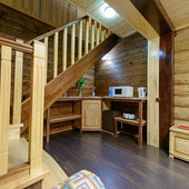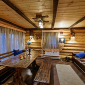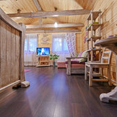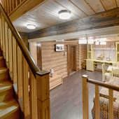 По старым русским традициям «Баня у реки» в «Кантри Хоум» выполнена из сруба. Благодаря этому создается правильный микроклимат и чувствуется приятный аромат древесины.