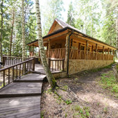 Теплые летние вечера лучше всего провести на открытой веранде, вместимостью до 70 человек, наслаждаясь чистейшим лесным воздухом и пением птиц.