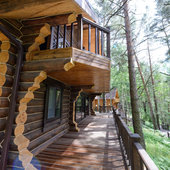 Он представляет собой комплекс аттракционов на высоте между деревьев. Вам предстоит преодолеть различные препятствия: подвесные мосты, качели, сетки, маятники, троллеи и воздушные велосипеды.