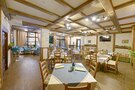 Великолепная кухня, шикарный вид вокруг, уютные столики, камин, музыка и приветливый персонал помогут проникнуться атмосферой спокойствия и непринужденности и забыть о ежедневной суете. Блюда в ресторане приготовлены из продуктов, выращенных на собственной ферме. Теплые летние вечера лучше всего провести на открытой веранде, вместимостью до 70 человек, наслаждаясь чистейшим лесным воздухом и пением птиц.