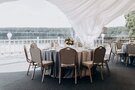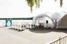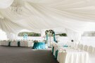 Площадь шатра 250 кв.м, вместимость 160 человек (максимально).