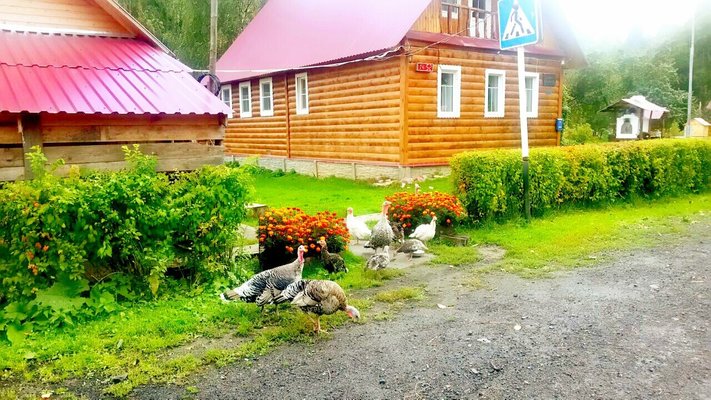 В домах нет сервиса,от слова почти совсем.Вас заселяют и все на этом.В доме нет кухни( есть чашки,тарелки и чайные ложки,чайник электрический) .Кухня общая на территории базы,но это всего 2 комфорки ,стоят столы,грязные холодильники и такая же микроволновка.Если отдыхает много народу,будет очередь.Бассейн почистили на 3 день нашего пребывания,в нем купаются и утки .Уборки в доме никто не проводит,самим тоже нечем убрать.В доме за 6 тысяч в сутки хотя бы должны быть чистые окна,и обстановка поновее.Правда есть телевизор. И САМЫЙ ГЛАВНЫЕ МИНУСЫ- ЭТО ДОРОГА К БАЗЕ И ОТСУТСТВИЕ ИНТЕРНЕТА И СВЯЗИ.Если едите с детьми - подростками,имейте это ввиду.Наши собрались на следующий день домой.