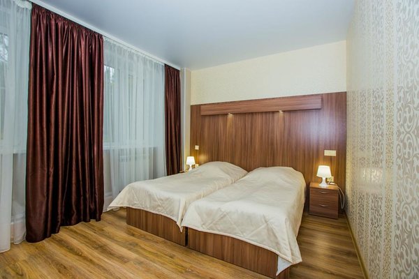Приветливый персонал проведет для Вас ознакомительную экскурсию по санаторию и поможет решить все вопросы, связанные с пребыванием в «Зеленом городке». К услугам гостей удобные двухкомнатные и однокомнатные номера пятиэтажного корпуса, а также уютные коттеджи с просторными комнатами. Единовременно в санатории могут отдыхать сто двадцать человек.