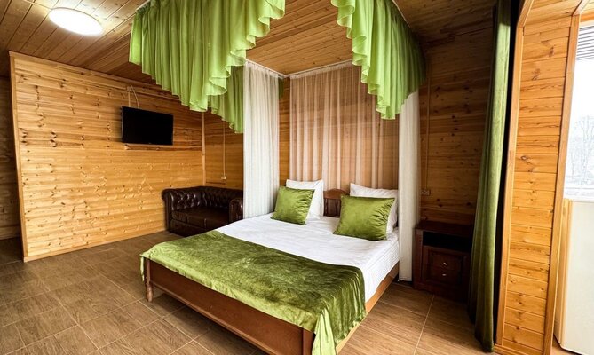 Настоящая русская баня на дровах с парилкой и купелью. Баня доступна даже для не проживающих гостей.
