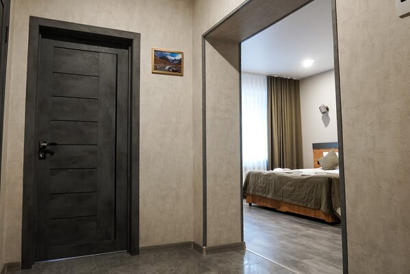 Самолетом до аэропорта г. Нальчик, далее на маршрутке №535 до остановки «КБГУ», далее пройти пешком 320 м до гостевого дома.