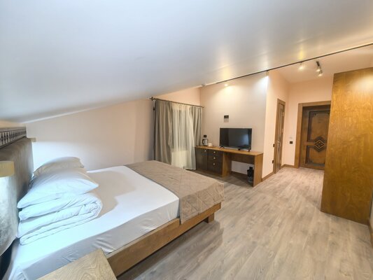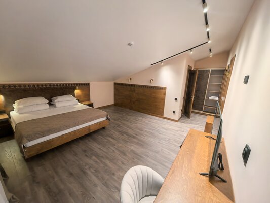 Просторные и уютные номера гостевого дома оснащены всем необходимым для комфортного отдыха: собственной ванной комнатой, современной мебелью и удобными кроватями. Многие номера предлагают потрясающий вид на горы с балкона. Интерьер продуман до мелочей, создавая расслабляющую атмосферу после дня, проведенного в горах.