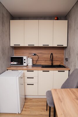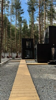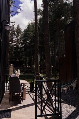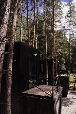 Уютные двухэтажные домики, оборудованные с вниманием к деталям, приглашают к полноценному расслаблению. Комфортабельные спальни и зоны отдыха, дополненные современной техникой – от кофемашины до умной колонки «Алиса» — создают домашнюю атмосферу. Просторные террасы и система обогрева обеспечат уют в любое время года.
