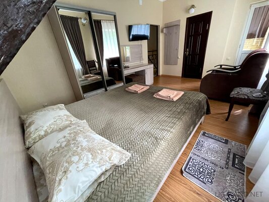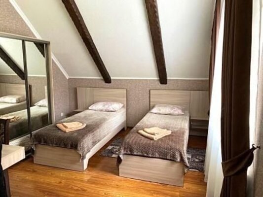 От горнолыжных курортов «Азау» и «Чегет» всего 5-9 минут езды, и несмотря на близость к горным склонам, здесь царит тишина леса, шум ручья и покой, позволяющие отдохнуть от городской суеты.