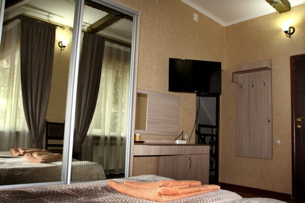 В домах и номерах, доступных для аренды, есть все необходимое для комфортного проживания. У каждого домика есть зона для барбекю с шампурами, мангалом и удобной мебелью на улице. Также установлена труба с нарзаном, здоровый напиток, который можно взять с собой.