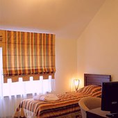 Комплекс для размещения гостей представляет собой четырехэтажное здание. Категории номеров включают «Стандарт», «Юниор», «Апартаменты» и «Family», в каждом их которых есть сейф, минибар, телевизор, фен, санузел и WI-FI. Отдыхающим предлагается двухразовая система питания «шведский стол» с питательным завтраком и вкуснейшим ужином, включенным в цену путевки.
