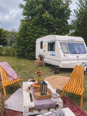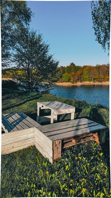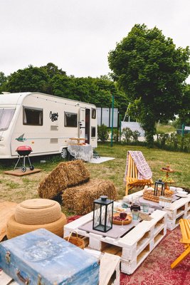 Красивая полянка в Boho-стиле от кемпинга «1000 звёзд» находится на берегу озера «Синявинское».