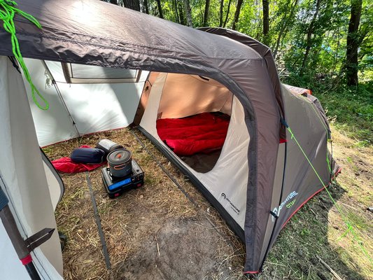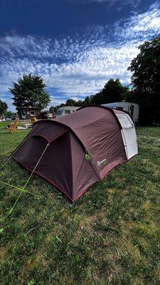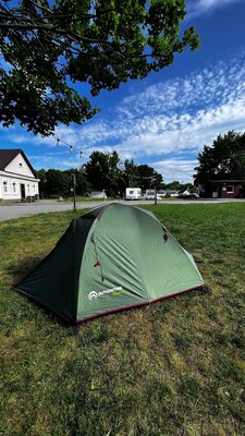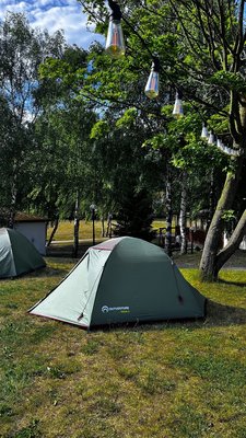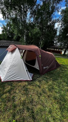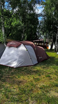 На территории кемпинга есть два автодомика: романтический для пары и большой пятиместный, а также палатки различной вместимости с оборудованием — 3-х и 4-х местные.