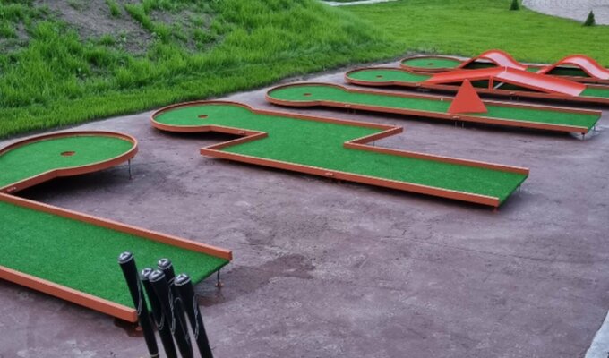 Гости могут попробовать свои силы в королевском спорте. Пять дорожек мини-гольфа доступны абсолютно бесплатно как взрослым, так и детям.