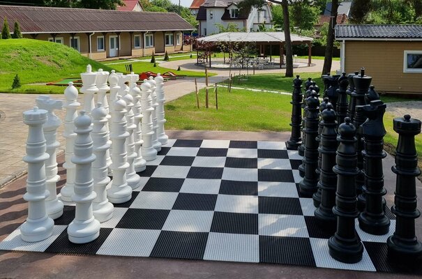Шахматная доска с фигурами высотой более 120см - не только место для игровых баталий, но и прекрасная зона для фотосессии.