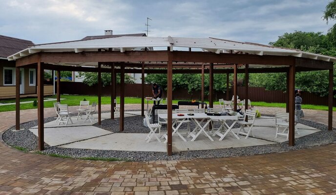 В распоряжении гостей две больших беседки с мангалами, удобной стильной мебелью и всем необходимым для барбекю-вечеринки.