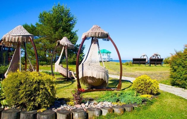 Отель с большой территорией, рядом с сосновым бором и одновременно на берегу моря, безупречная экология