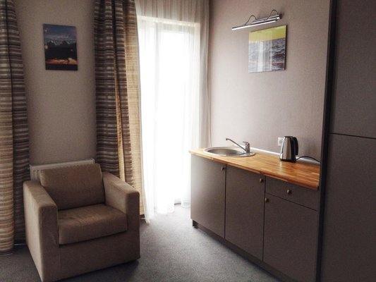 Мини-гостиница с комфортабельными современными номерами предлагает гостям насладиться высоким сервисом и невероятной атмосферой домашнего уюта. Во всех номерах собственная ванная комната с душем с бесплатными туалетно-косметическими принадлежностями и феном. Окна номеров выходят в строну моря или в сад. В некоторых имеется балкон. В стоимость проживания входит завтрак «шведский стол» и буфет, в котором в любое время, вы сможете выпить чай или кофе со сладостями.