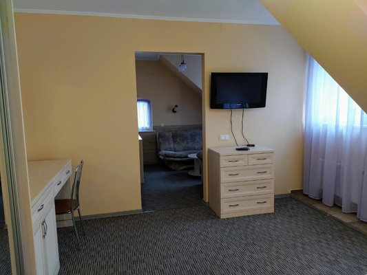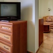 Все номера оснащены телевизором и холодильником. В некоторых номерах обустроен гостиный уголок.