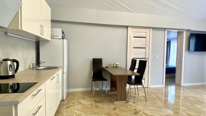 В доме свежий ремонт, новая мебель и техника. Также к вашим услугам стиральная машина и гладильные принадлежности.