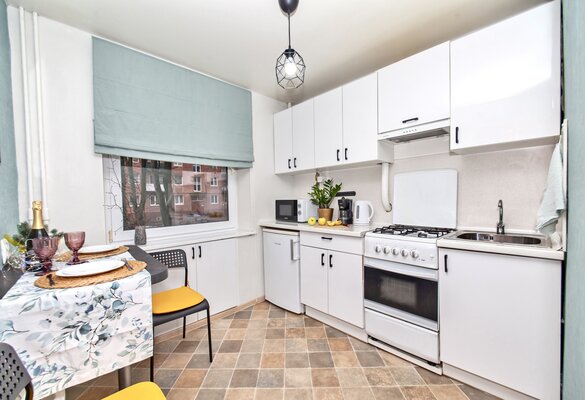 Комфортабельная квартира в самом сердце Калининграда, в шаговой доступности от набережной, Музея Янтаря и Центральной площади. Рядом остановка транспорта, магазины и кафе. Светлая, уютная квартира (5-этажный дом) предлагает гостям все необходимое для комфортного отдыха: удобную мебель, ЖК-телевизор с кабельными каналами, Wi-Fi, постельное белье, полотенца и туалетные принадлежности. Полностью оборудованная кухня включает микроволновую печь, холодильник, плиту и посуду.