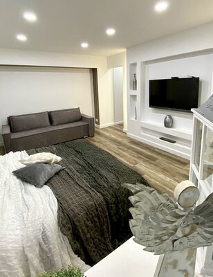 Комфортабельные апартаменты с полностью оборудованной кухней (электроплита, электрочайник), стиральной машиной, кондиционером, ЖК-телевизором и высокоскоростным интернетом. В распоряжении гостей санузел с душем.