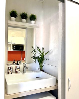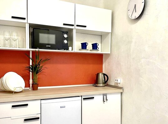 Апартаменты полностью оборудованы всем необходимым для комфортного проживания: мебель, кондиционер, электроплита, микроволновая печь, холодильник, электрочайник, стиральная машина, утюг, фен, душ, набор туалетных принадлежностей, бесплатный Wi-Fi и парковка.