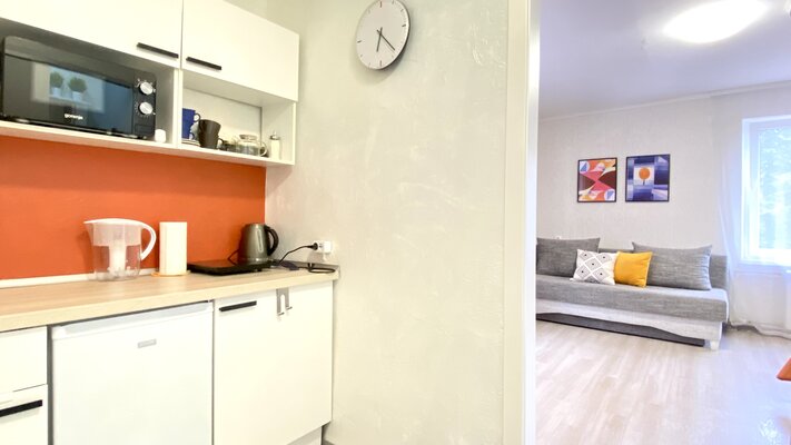Стильные апартаменты в самом сердце Калининграда — идеальное место для отдыха и знакомства с городом. В шаговой доступности находятся остров Канта, Кафедральный собор, набережная Преголи, Рыбная деревня, Бранденбургские ворота, Музей Мирового океана и областная филармония. Рядом — остановки общественного транспорта, кафе, рестораны и магазины. Железнодорожный вокзал, откуда всего за 30 минут можно добраться до балтийских курортов, находится в 15 минутах ходьбы.