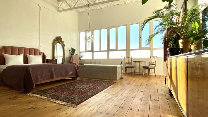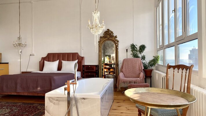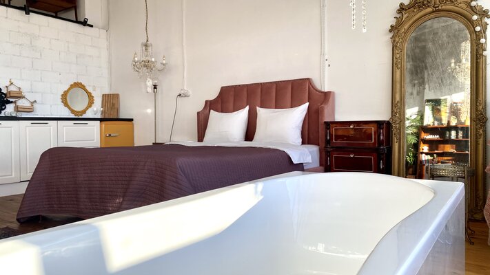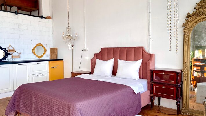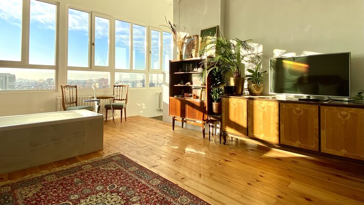Почувствуйте Калининград с высоты птичьего полета. Просторные апартаменты-студио на 12 этаже с панорамным видом расположены в самом сердце города, в 100 метрах от Королевских ворот. Рядом — супермаркет SPAR, лучшие рестораны (Сиеста, Редюит, Asado), развлекательный комплекс «Резиденция Королей» и уютные кофейни. Музей Янтаря, площадь Василевского и набережная Трибуца — всего в 8-15 минутах ходьбы. В шаговой доступности также Верхнее и Нижнее озера. Уютный интерьер, продуманный до мелочей, подарит вам незабываемый отдых.