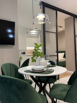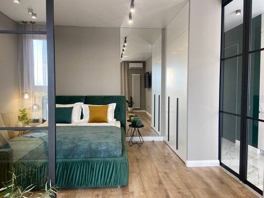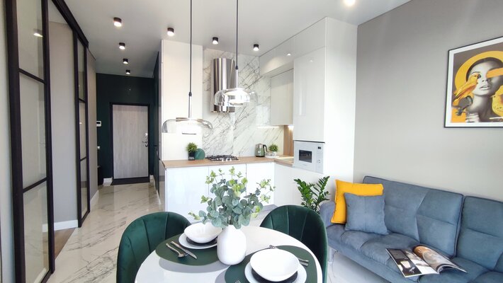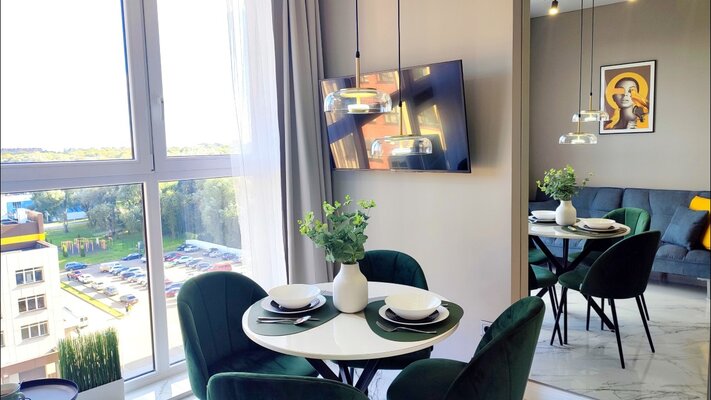 Современные апартаменты в новом жилом комплексе в центре города отличаются стильным дизайнерским оформлением.