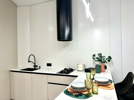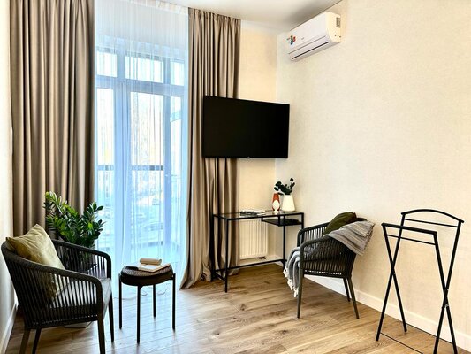 Светлые и просторные апартаменты с новым ремонтом и автономным отоплением. Номера оборудованы системой кондиционирования, современной техникой для вашего удобства.