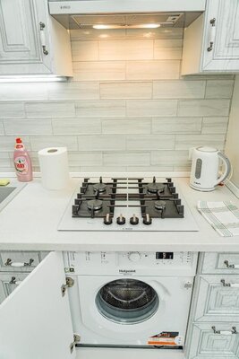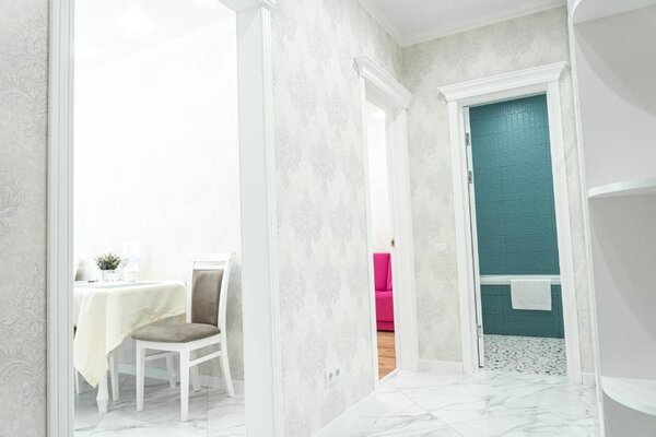 Два светлых номера с паркетными полами, оформленных в изысканных белых тонах. В каждой комнате: собственная ванная комната, набор полотенец, тапочки, фен, электрочайник, телевизор и бесплатный Wi-Fi. Полностью оборудованная кухня, где есть все необходимое для приготовления пищи.
