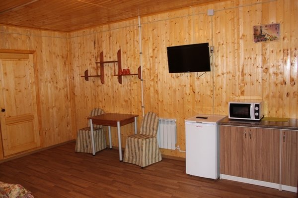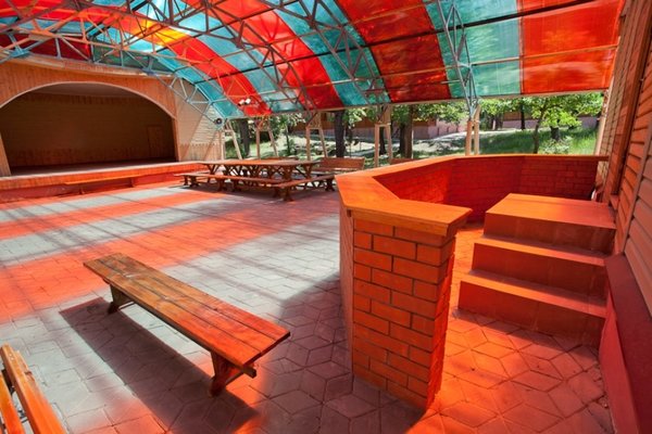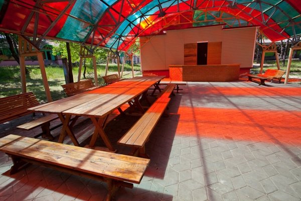 На территории есть автостоянка, кафе, спортивная площадка, баня, эстрада, беседки, мангальные площадки, мини-зоопарк, где живут кролики, бараны, овцы, лошади, небольшой пруд с утками.