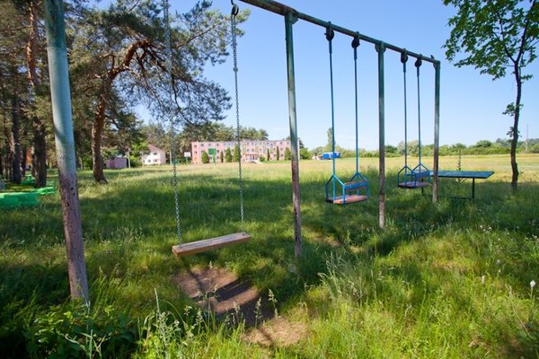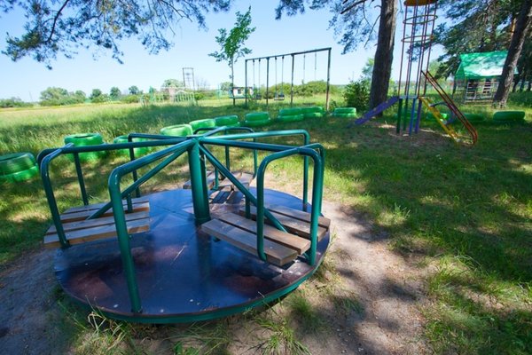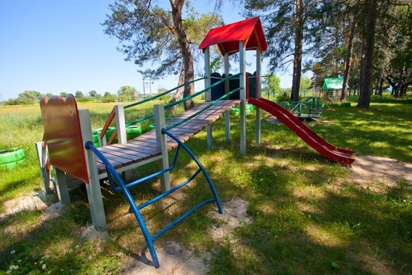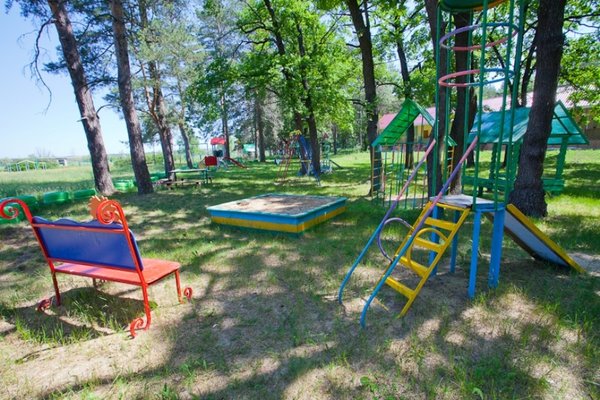 Детская площадка оборудована песочницей, качелями, батутом, горкой. Работает анимация, проводятся конкурсы, танцы. Есть контактный зоопарк.
