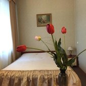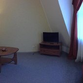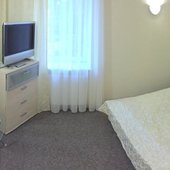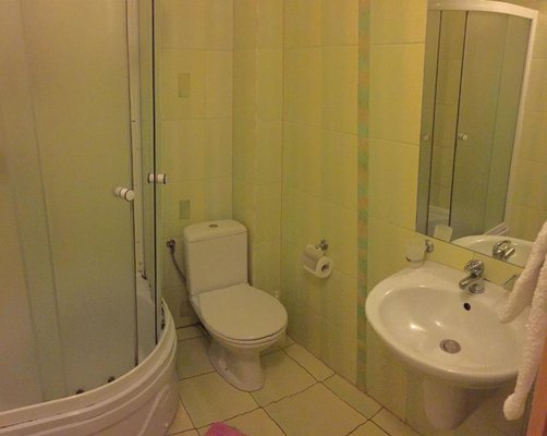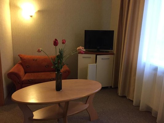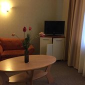 Номера оформлены в теплых тонах и располагают телевизором с плоским экраном, холодильником и собственной ванной комнатой с туалетно-косметическими принадлежностями и феном.