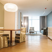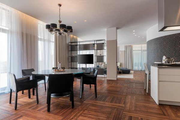 Отель «Crystal House Suite Hotel & SPA» расположен в самом живописном центре города с видом на историческое озеро. «Crystal House Suite Hotel & SPA» предлагает своим гостям 71 номер категории «Люкс», из них 69 номеров площадью от 75 до 175 кв. метров. Но самое важное, что на 9-ом этаже расположены 2 пентхауса площадью по 300 кв. метров с огромной частной террасой в 150 кв., собственным зимним садом, панорамой на город, в том числе на новый стадион «Калининград».