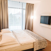 С террасы абсолютно каждого номера открывается прекрасный вид на озеро – шум городских улиц остается за дверью номера и создается впечатление тихой уединенности.