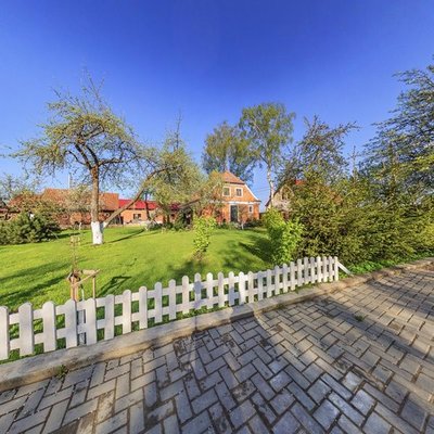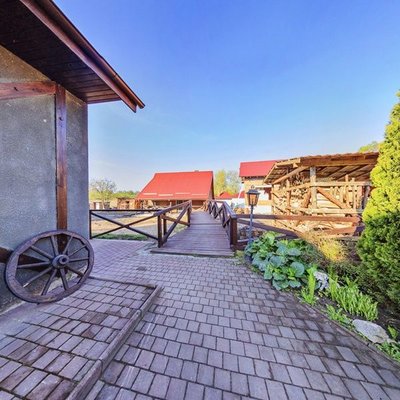 Большая охраняемая территория, постройки из красного немецкого кирпича и натурального дерева, плодовые деревья, тенистые аллеи и крытые беседки для больших и маленьких компаний придадут вашему отдыху незабываемый шарм дикой природы.
