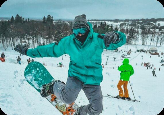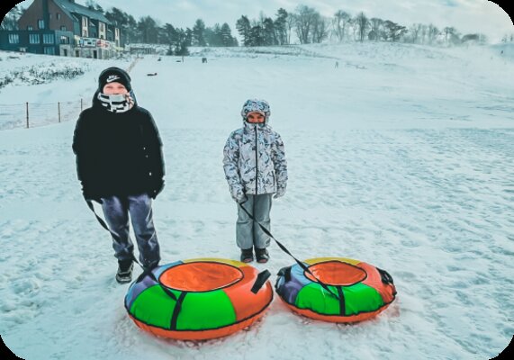Для катания предусмотрены основной и учебные склоны, они оба оснащены подъёмниками. Вы можете кататься как на своём сноуборде, так и взять в прокате.
