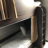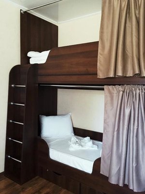Спальное место на двухъярусной кровати в общем номере для мужчин и женщин