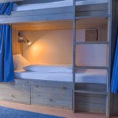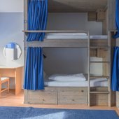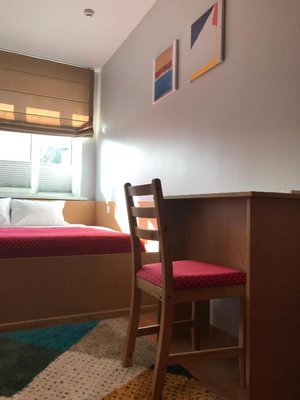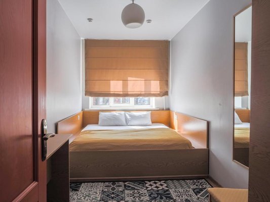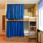 В хостеле «КД» есть отдельные и общие номера с занавешенными кроватями, индивидуальными лампами и запирающимися шкафчиками. Гости могут пользоваться общей ванной комнатой с душем и феном.