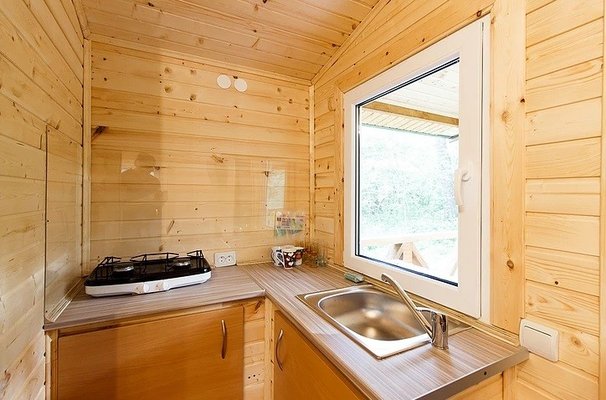 Для размещения туристам предлагается несколько вариантов домиков различной вместительности. Все дома оборудованы современными кухнями, где гости самостоятельно готовят.