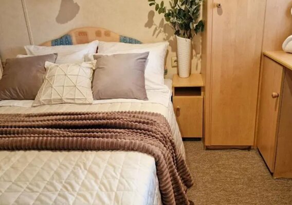 Дом полностью оборудован для вашего комфорта: современная мебель, премиальная бытовая техника (холодильник, микроволновка), утюг, фен, телевизор. Насладитесь просторными спальнями, стильным душем, отдельным санузлом и уютной гостиной. Зона барбекю с садовой мебелью станет любимым местом для вечерних посиделок.