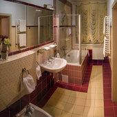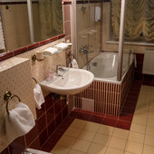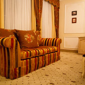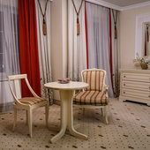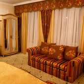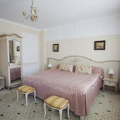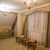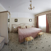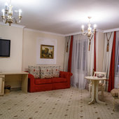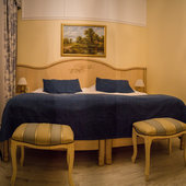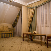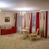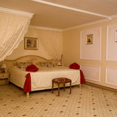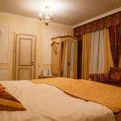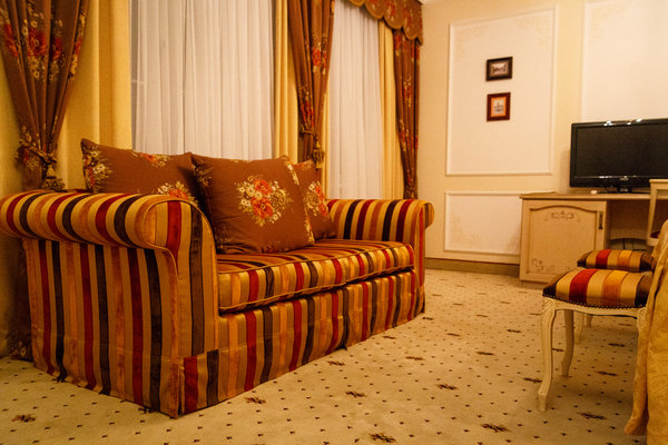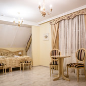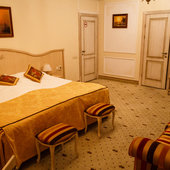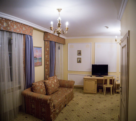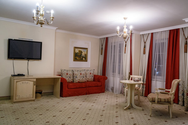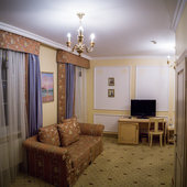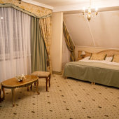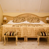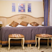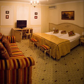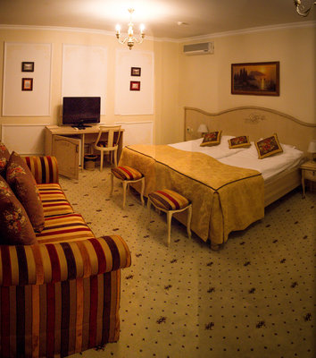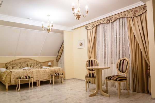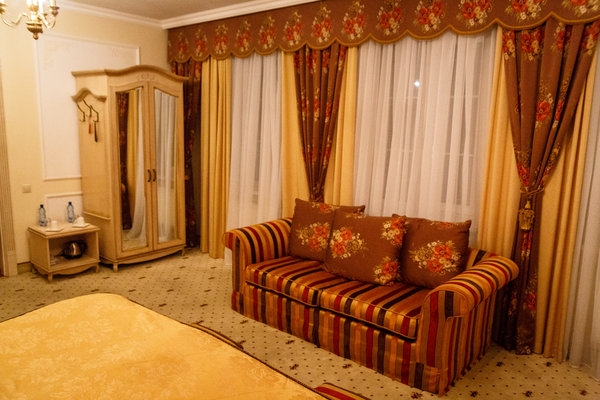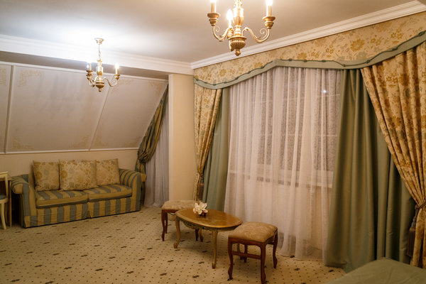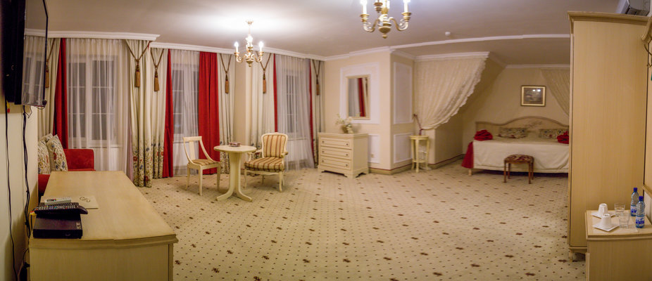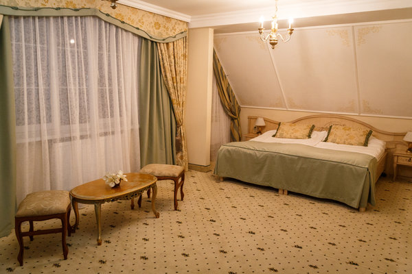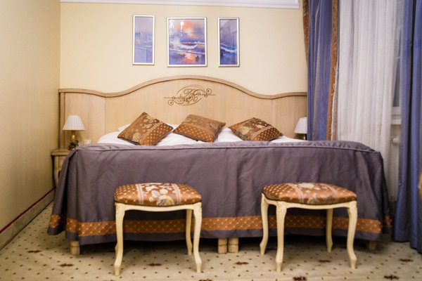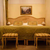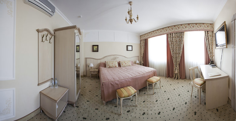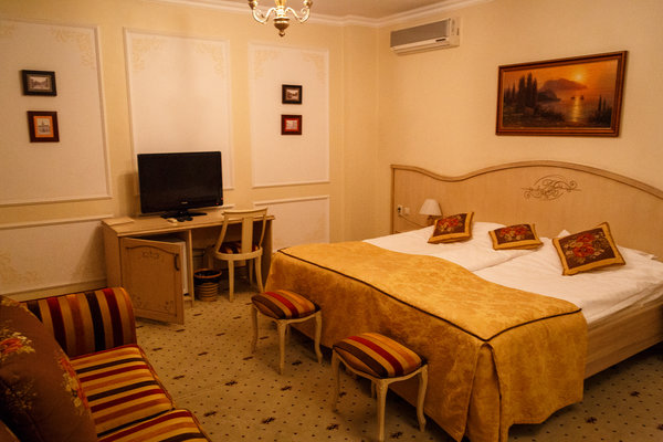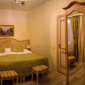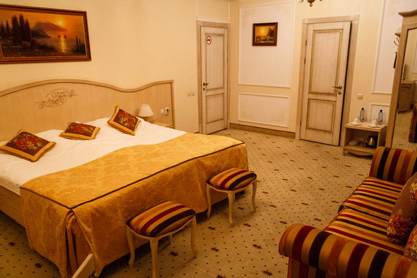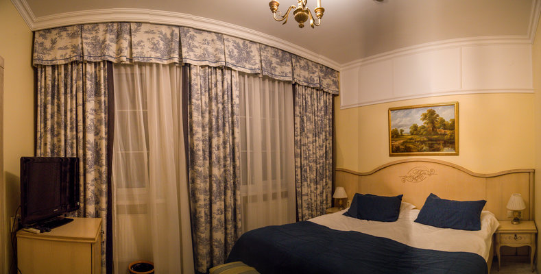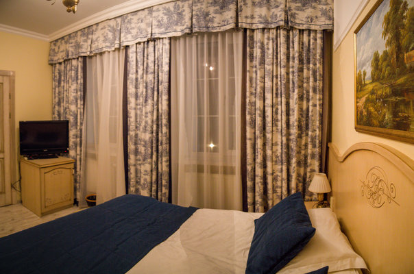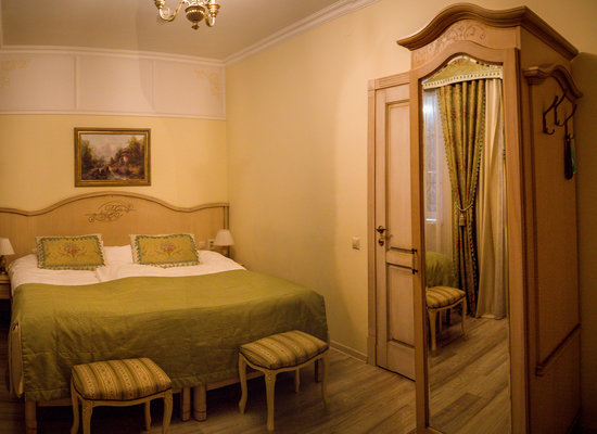 Отель расположен в историческом трехэтажном здании, выстроенном в первой половине XIX века. Гостей ожидают просторные и светлые номера категории «Стандарт», «Улучшенный», «Полулюкс», «Комфорт», укомплектованные изящной мебелью и оснащенные собственным санузлом с душем или ванной.